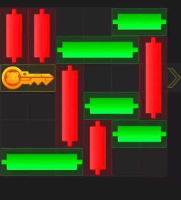 Hamster Kombat 巧妙地將加密主題融入其迷你遊戲中,使用垂直和水平的市場K線來增加每天拼圖的複雜性。要解決迷你遊戲拼圖,你必須在30秒內水平滑動(綠色)或垂直滑動(紅色)市場K線,將金鑰匙引導到出口。