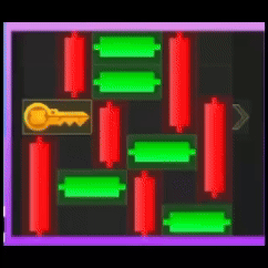 倉鼠格鬥巧妙地將加密主題融入其迷你遊戲中,使用垂直和水平的市場 K 線增加每個日常拼圖的複雜性。要解決迷你遊戲拼圖,你必須在 30 秒內水平(綠色)或垂直(紅色)滑動市場 K 線,將金鑰匙引導到出口。