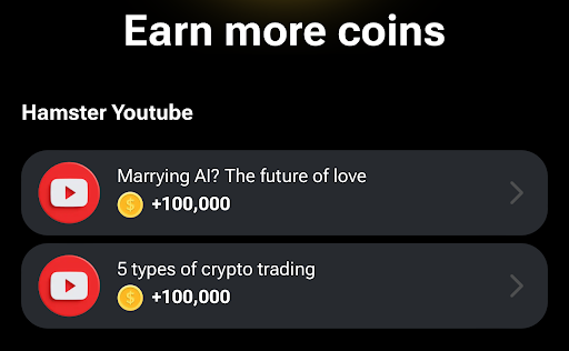 保持活躍在社交媒體:關注Hamster Kombat的頻道以獲得額外獎勵,如每個視頻任務提供10萬幣的YouTube視頻任務。