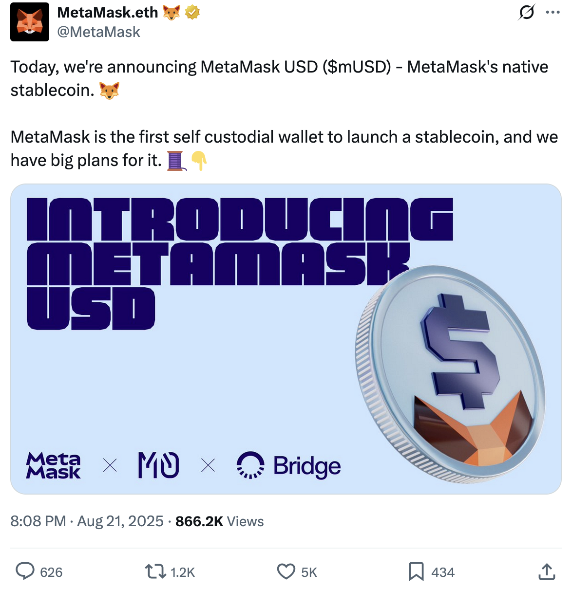 MetaMask 推出穩定幣以簡化 Web3 並實現現實世界中的消費(2025 年 8 月 21 日)