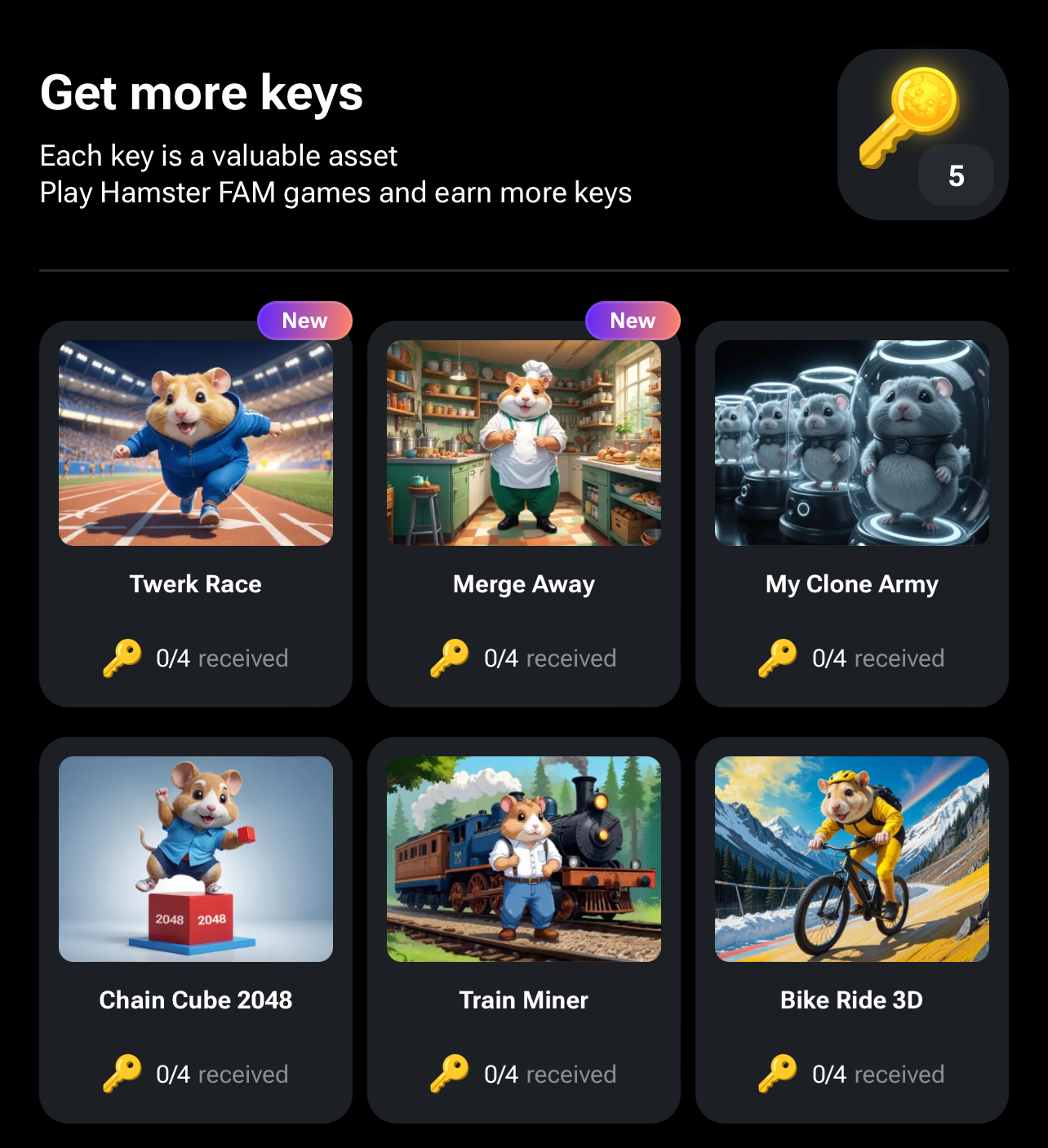 參加迷你遊戲以賺取金鑰匙並提升您的獎勵。Hamster Kombat 今天增加了更多迷你遊戲,提供額外的機會來解鎖可能影響您 $HMSTR 空投規模的金鑰匙。在代幣發行之前提升您的賺錢能力。
