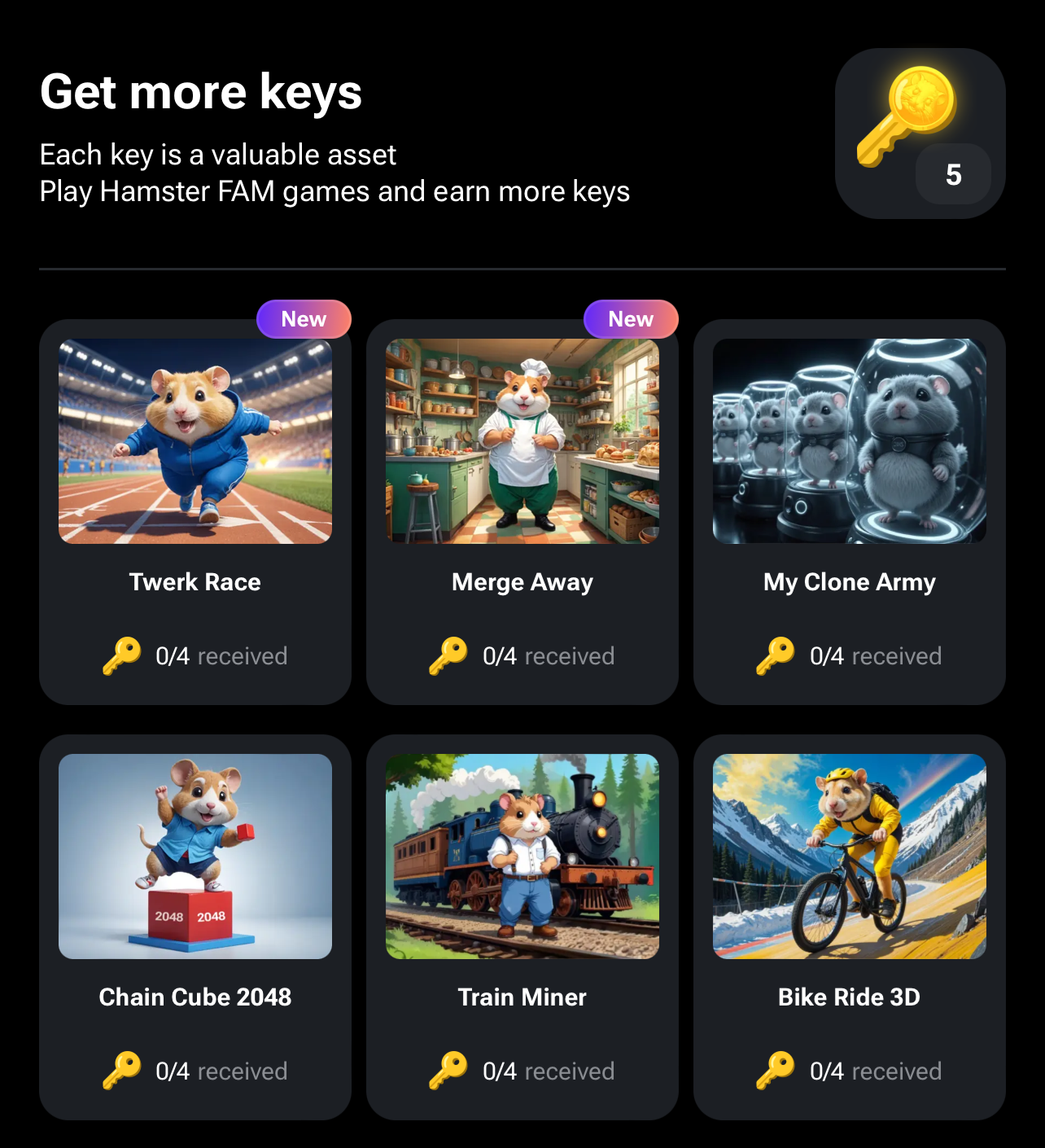 參與迷你遊戲以獲得金鑰匙並提升您的獎勵。Hamster Kombat 增加了更多迷你遊戲,提供了額外的機會來解鎖可能影響 $HMSTR 空投大小的金鑰匙。在代幣發行前,您可以嘗試這些迷你遊戲並提升您的賺錢能力。