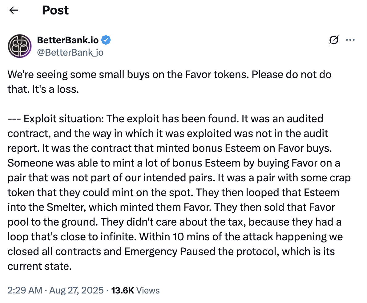 你的位置:首页>安卓试玩软件>区快链资讯 > 交易所资讯 > kucoin交易所资讯 > Web3 安全警示:BetterBank 在 PulseChain 上遭受攻擊,損失約 百萬