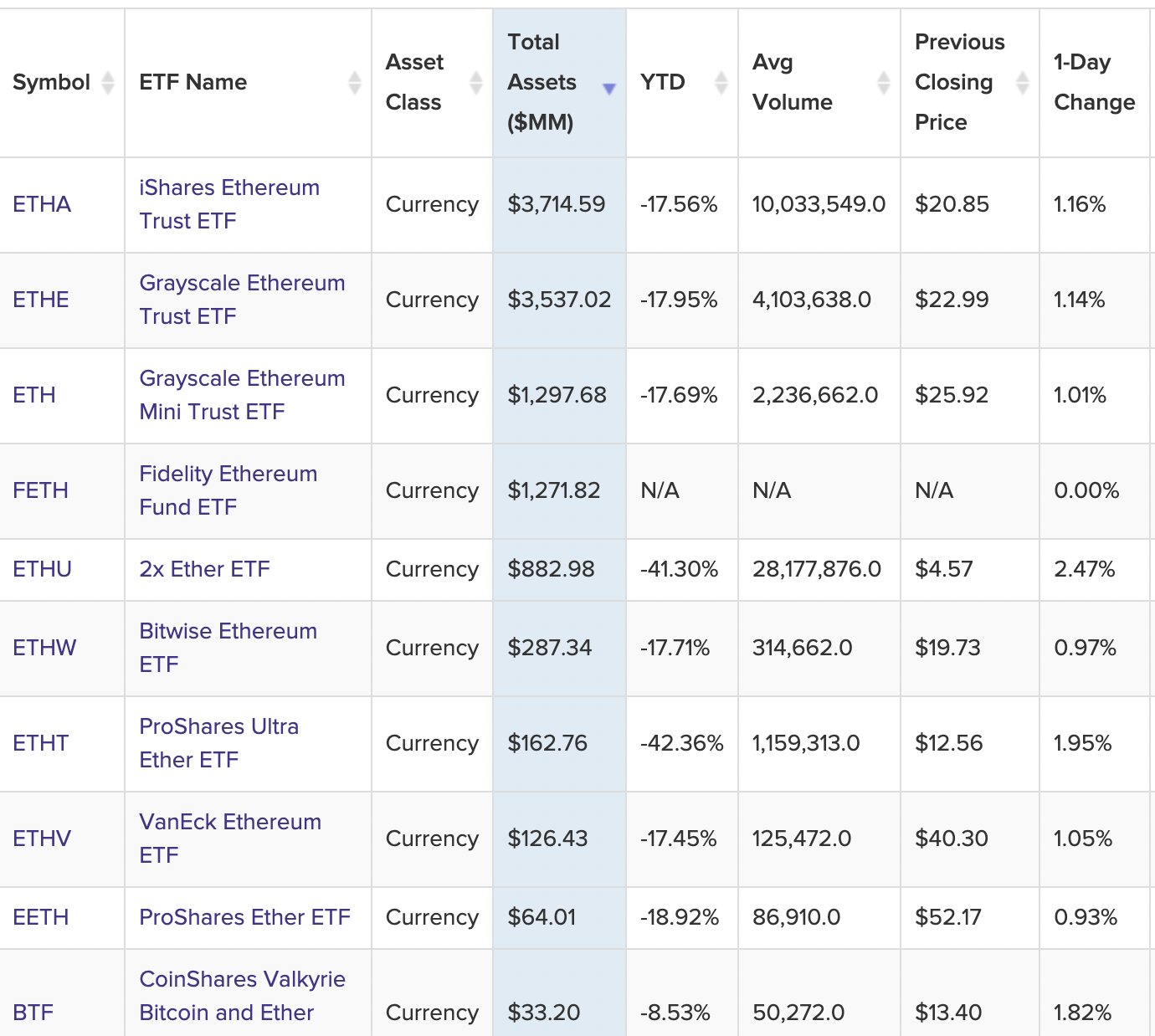 現貨以太坊ETF:這些基金直接投資於以太幣(ETH),反映其當前市場價格。例如,iShares Ethereum Trust ETF (ETHA) 旨在追蹤以太幣價格的表現。