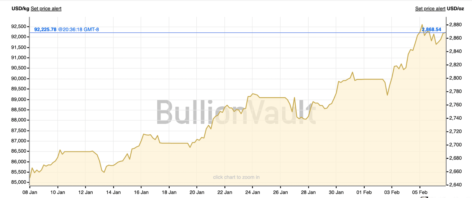 黃金價格隨時間變化。來源:BullionVault
