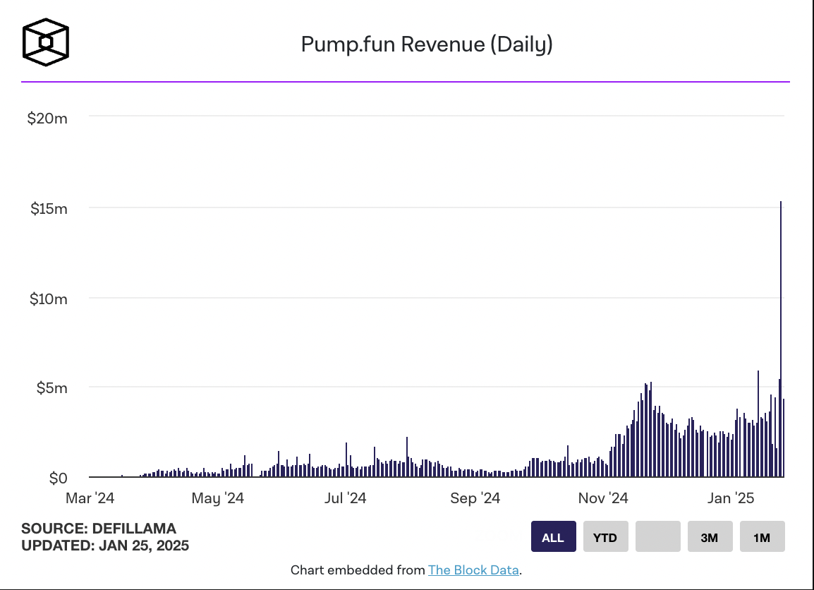 Pump.fun創下單日收入紀錄,收益達1550萬美元
