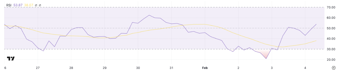 RSI 在2天內從20.8跳升至53.87,顯示買壓增加
