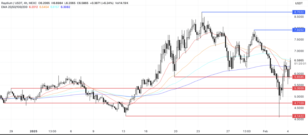 閱讀更多: Raydium 目標 $8 里程碑,飆升 15%,強勁看漲指標