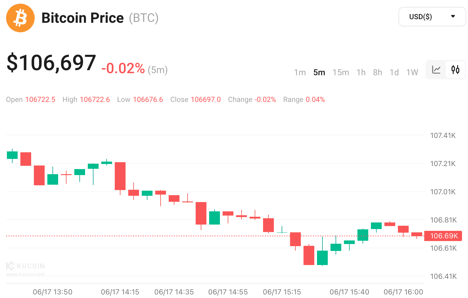 Bitcoin climbed 1.2% to about $106,800 after holding above the $106K mark.
