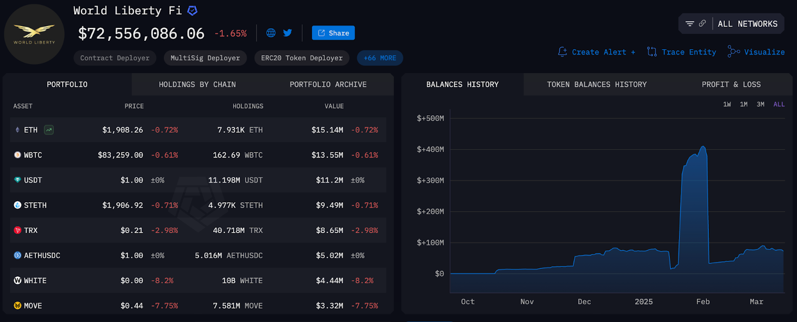 World Liberty Financial 是一個與特朗普家族相關的加密項目。該項目於 2025 年 3 月 16 日投資了 400 萬美元於 Avalanche 和 Mantle 上。公司花費 200 萬 USDT 購買了 103911 個 AVAX,平均價格為每枚代幣 19.25 美元。另外還花了 200 萬 USDT 購買了 2450000 個 MNT,平均價格約為每枚代幣 0.81 美元。此外,該公司的加密資產總組合現已超過 3.4 億美元,分佈於 11 種資產,包括以太坊 (ETH)、Wrapped Bitcoin (WBTC)、Tron (TRX)、 Chainlink (LINK)、Aave (AAVE)、Ethena (ENA)、Movement (MOVE)、Ondo (ONDO) 和 SEI。分析師認為這些購買可能是更廣泛的代幣交換計劃的一部分。此外,加密研究員 EmberCN 解釋道:「實際上有許多代幣 ‘支持’ World Liberty Financial。也就是說,項目方認購 WLFI,然後 WLFI 投資組合購買項目方的代幣」,這揭示了互惠的投資關係。數據顯示 WLFI 現面臨 1.18 億美元的未實現損失,其中僅以太坊就佔 8800 萬美元的虧損。該項目還否認了與 Binance 合作的報導,並稱這些指控帶有政治動機。WLFI 回應道:
