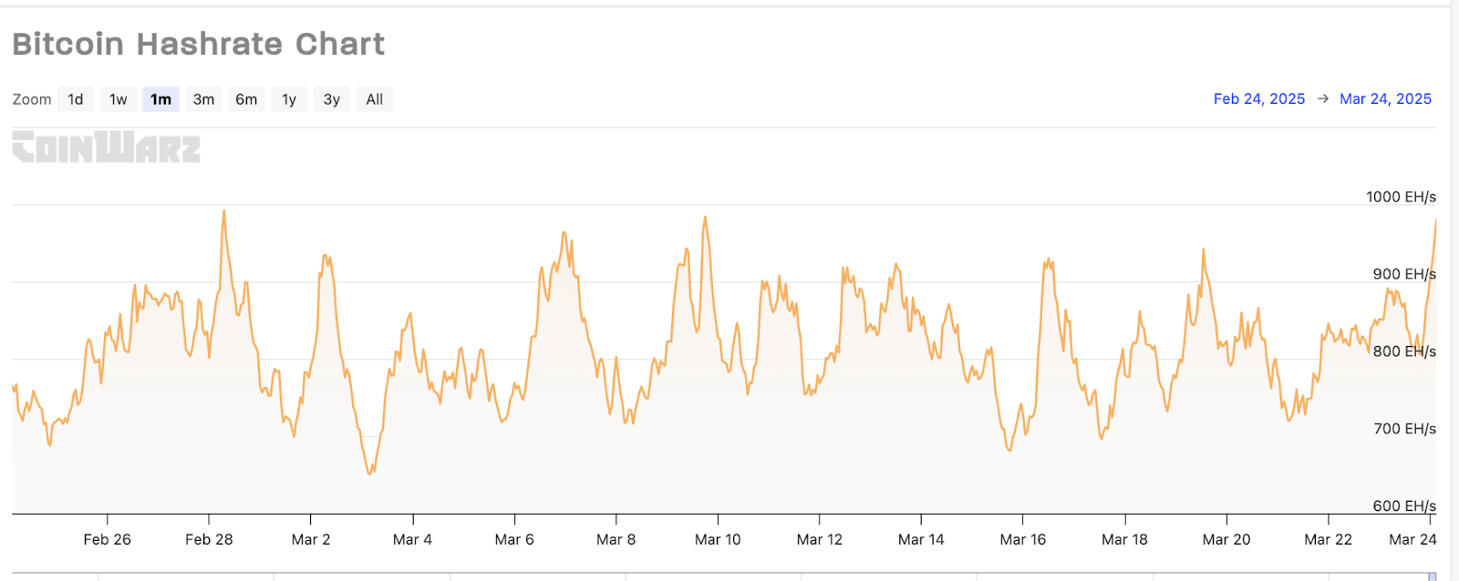 比特幣過去一個月的算力 | 資料來源:CoinWarz