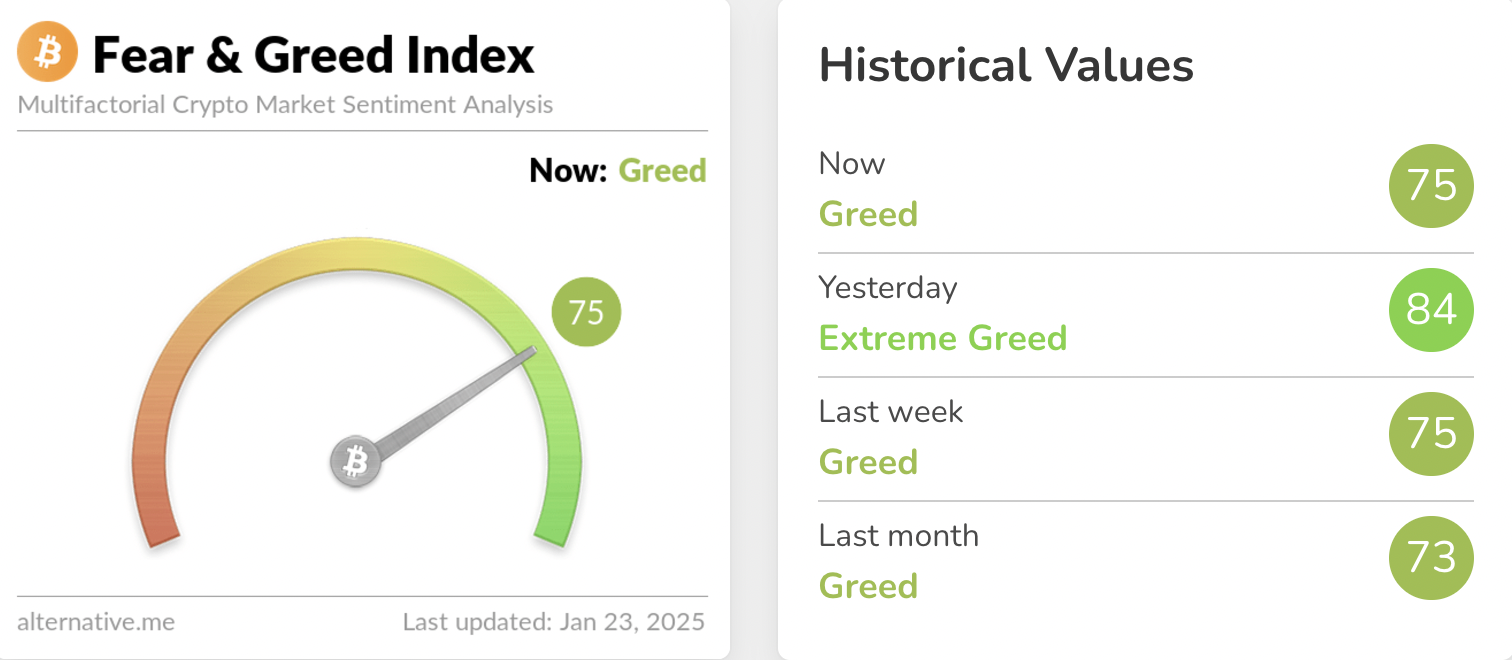 比特幣在本週早些時候以 $109,356 交易,接近 $110,000,目前價格為 $103,704,過去 24 小時下降了 -2.30%,而 以太坊報價為 $3,242,下跌 -2.55%。恐懼與貪婪指數下降至 75,顯示牛市情緒。加密貨幣市場正見證著關鍵的變化,標誌著趨勢的轉變和機構興趣的增加。隨著唐納德·特朗普宣佈重大人工智能投資,Worldcoin (WLD) 的價格顯著上漲了 19%。同時,孫宇晨提出了一項雄心勃勃的計劃,將以太坊價格推至 $10K,而 Bitwise 則申請了狗狗幣 ETF,反映出主流金融對模因幣的接受度增加。這些發展突顯了加密生態系統的動態性及其不斷演變的格局。