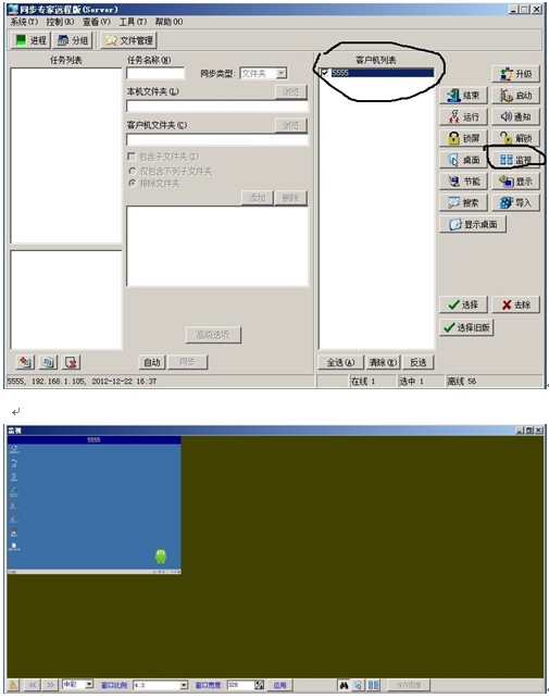 这人时候监控的软件安装就算完成了,工作室的朋友可以在监控机打开名为SEWanSvr的客户端的软件来监控你的游戏主机了!如图5所示中,就是我被监控的第5游戏主机上线上,在右边有好多功能大家可以自己研究,我现在点击监控,就全部OK了。