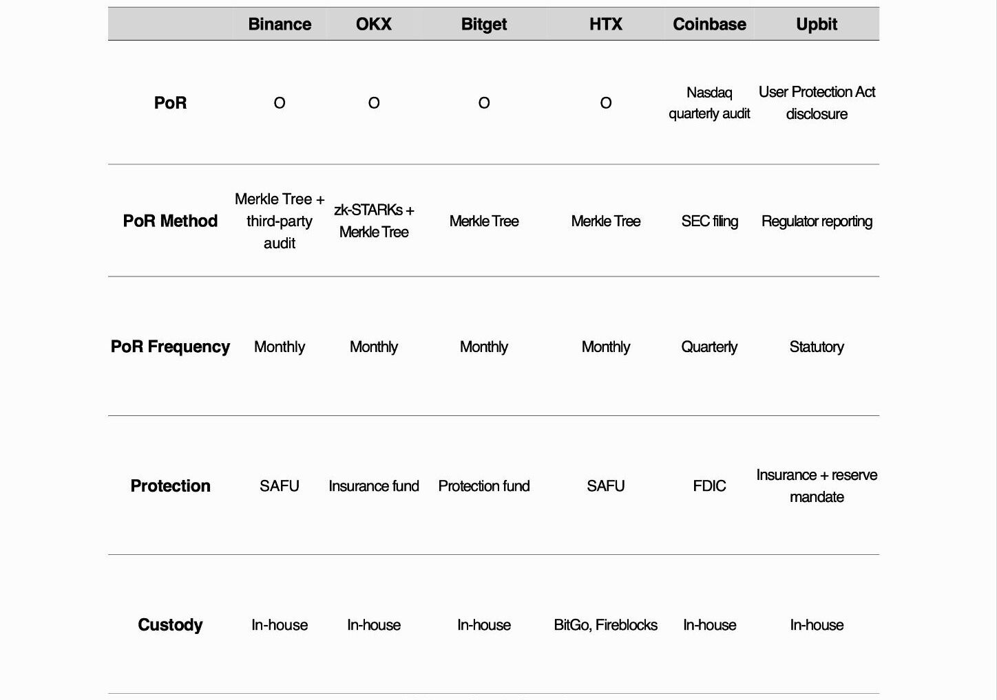 需要注意的是,表格中总结的PoR、保护基金和安全框架仅反映了特定时间点的情况。即使交易量大幅下降,每月PoR披露是否持续以及保护基金是否保持完好也至关重要。