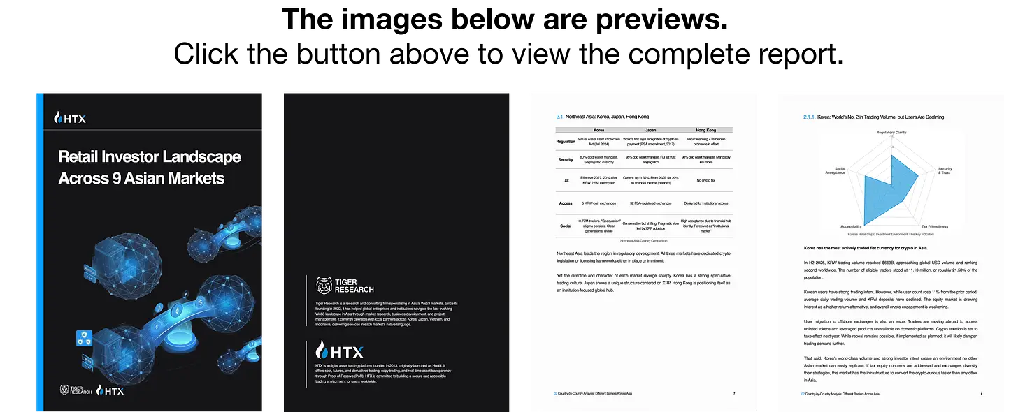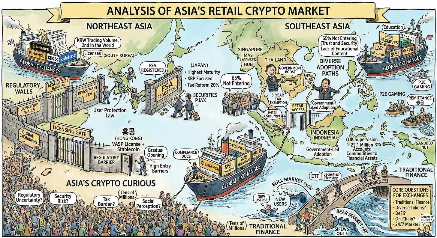 本报告由 Tiger Research 撰写,加密货币市场虽然增长迅速,但散户投资者数量却在下降。我们分析了亚洲九个潜在用户群体最大的市场的准入门槛,以及交易所的应对措施。