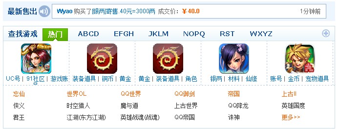 在就是通过交易量分析得结论,交易量比较火的手机游戏有:忘仙 世界OL QQ世界 QQ御剑 帝国上古II等等。当然这只是一些交易量比较大的,其实还有好多别的手游交易量也是可以的。拿这几款游戏举例来说,每款游戏的单子都100-500单左右,是不是很可怕?并不比客户端网游交易量小哦!心动了没。且通过2小时左右的观察交易成交量也是可以的,平均5分钟左右就会有3单左右的成交量。