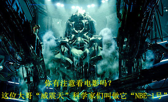 "NBE"的第三个意思,变形金钢你小时候看过吧?我也看过,不错小时候的变形金钢与我们一毛钱关系都没有!到是前几天出个那个真人版变形金钢和我们关系可就大了,还记得那个被冰冻起来的威震天吗?人类科学家们把它称作为代号“NBE1号”。