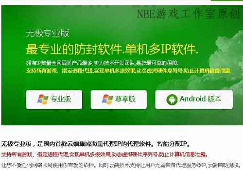 是我们NBE的终身合作伙伴,刚开始加入NBE的人可能都知道我和教主那些事儿。软件的效果不予评论,但存在即是合理,现在卖的还不错。此软件相当于ip代理,但又加了一些防封功能,受到工作室的喜爱。之后又出现了大量的X宝软件,但都是大同小异,效果就不说了。干这个行业这么多年,也没想着去做这样一个工具。可以说防封问题从入行的第一天起就陪伴在我们身边,但就是没想着去做这么一个东西。现在有人做了,并且做的很好。模仿者也很多。我只想说你们早干什么了,哈哈!