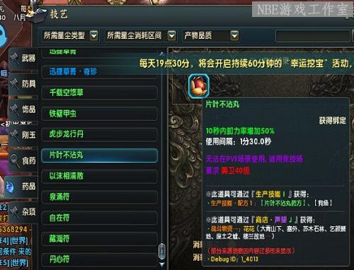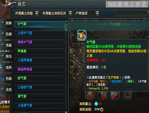 技艺(生产制作),生活技能可以做很多东西,例如疲劳药,武器,各种血药,打架药等等。土豪专用,打架冲级,必备!
