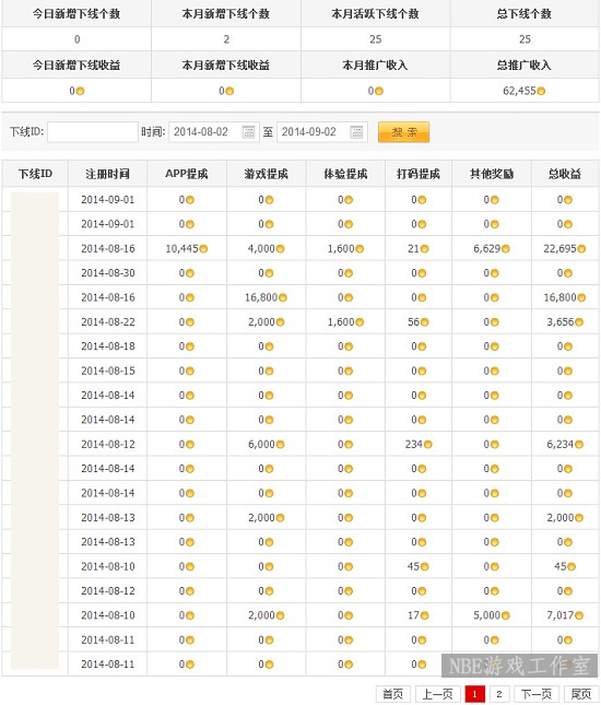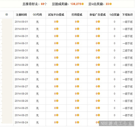 游戏试玩平台赚钱一般分四大类:“游戏赚钱”“体验赚钱”“打码赚钱”“推荐好友”。也许会有人的朋友可能注意到了,前几天NBE也挂了2个游戏试玩平台的推广链接,就是为了完成这份报告的,就是那个“关于四级下线赚大钱的思路”。得出具体数据如下,拿出来给大家参考一下,推广了半个月时间赚了不到20块钱(我就属于,X销不赚钱那类的,嘿嘿!)。