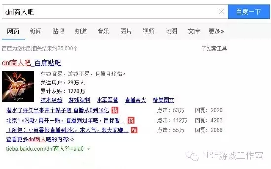娘了个腿了,又跑题了!“dnf商人/搬砖/吧”我只是举个例子,学习永远是对的,向玩家学习永远也是对的。不单单是这一款游戏,很多游戏我们要收集资料,寻找思路,其实真正大牛的攻略都是玩家贡献出来的。拓展到其他网游,我们可以从玩家哪里得到出金思路,利润分析,甚至是游戏bug等很多游戏攻略与赚钱方法,剑灵吧,天刀吧,上古吧等等。(其实有些事儿不必那么急功近利,有时玩家贡献出来的赚钱思路比游戏工作室要坦诚很多,并且不收费!)