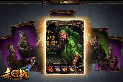 《赤壁之战》创新的卡牌国战玩法,玩家每天都可以获得抽取卡牌副将的机会,又或者通过无神殿、挖宝等方式,获得自己心仪的副将,让你为了出战。卡牌副将分为:力、灵、体、敏四种类型,每一个副将又拥有属于自己的技能和野史。三国名将甘宁、张辽,美女公孙婷、吕玲绮等,都将誓死追随你左右,为你开疆扩土,征战四方。