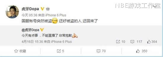 英雄联盟最强路人王dopa昨天发了一条微博说有事不直播,粉丝还蒙在鼓里不知道发生了什么事,今天dopa在微博里解释道:“英雄联盟国服账号被盗,还好被盗的人还回来了。”