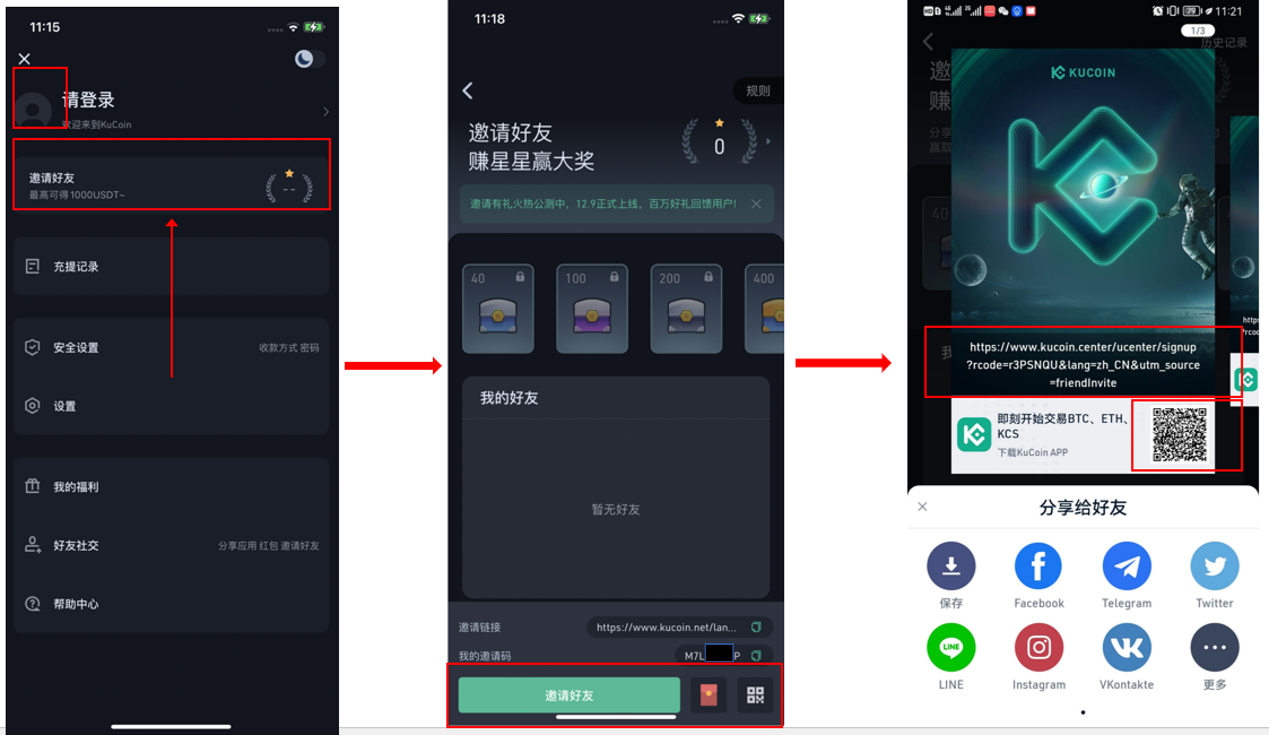 2021年11月25日,全新升級的KuCoin邀請有禮閃亮登場,邀請好友使用KuCoin 即可開啟神秘寶箱,被邀好友還可獲得為期一個月的VIP體驗資格。