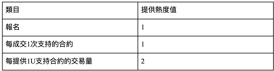 合約熱度值計算規則:合約熱度值=活動期間 所有支持者提供的熱度值之和。其中包括: