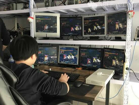 里屋是工作间,靠墙摆放着巨大的白色铁架,散装的风扇在上面大声呼啸。8台15英寸显示器排成两行,这些显示器分属5个不同的牌子。所有显示器上都是相似的画面,这些画面由同一个键盘操作着。而正在敲击键盘的是一个女人。在她眼里,这显然是工作,而非游戏。