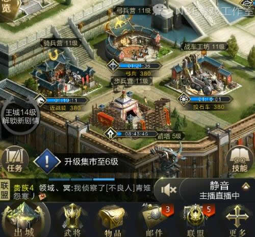 切记君主技能主点发展,太史院里有资源 城池发展 城防 和兵法。资源是必须点满的,然后是城池发展,兵法嘛里面有个制图学是提高行军速度的还有个募兵术是增加士兵训练速度的,这两个比较有用,可以适当点满。至于城防嘛,实在有空可以点一点,不点也无所谓。前期六级一下的兵造的够做任务就行,主要是多造一级运粮车,记住我们是资源商打架是别人的事,我们只负责提供资源。