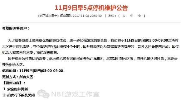 地震了!dnf官网公告,11月9日停机维护下架拍卖行及关闭