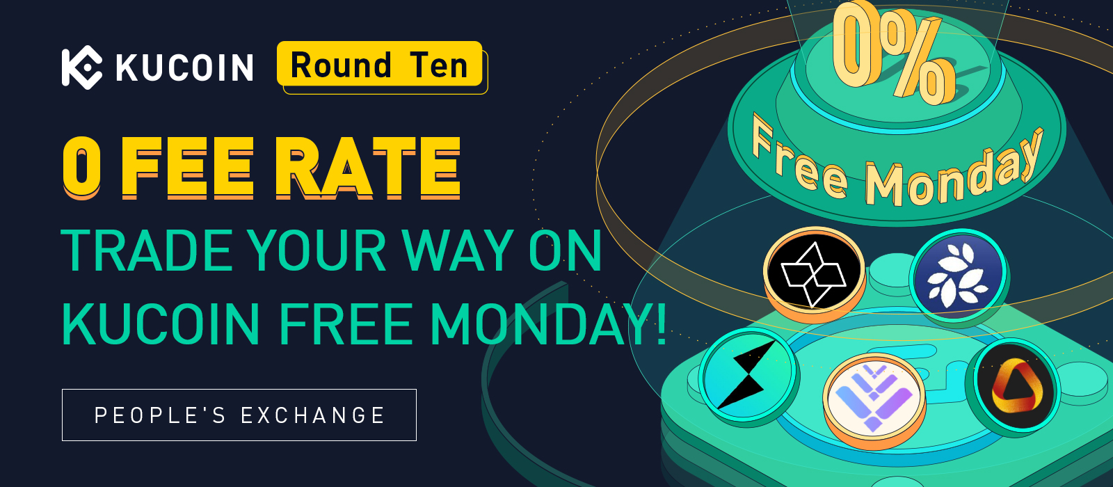 KuCoin週一全免日第十彈火熱來襲!本周有5個幣種享受手續費免單福利,在此邀請所有用戶參與,享受這場免費大放送!