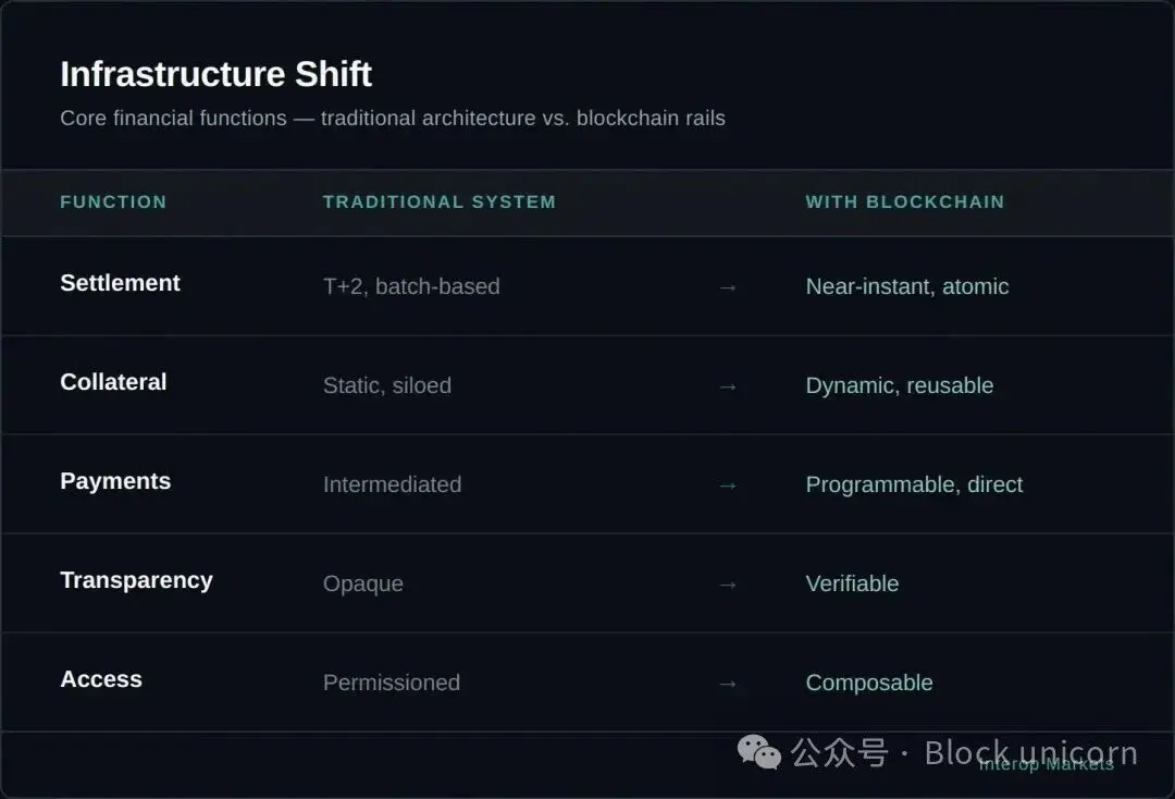 在當前情況下,抵押品只能在銀行營業時間內進行轉移,而托管分散意味著一家銀行持有的證券無法立即用於滿足另一家銀行的保證金要求。這種摩擦導致資本被鎖定,無法有效利用,也無法應對實時市場波動。
