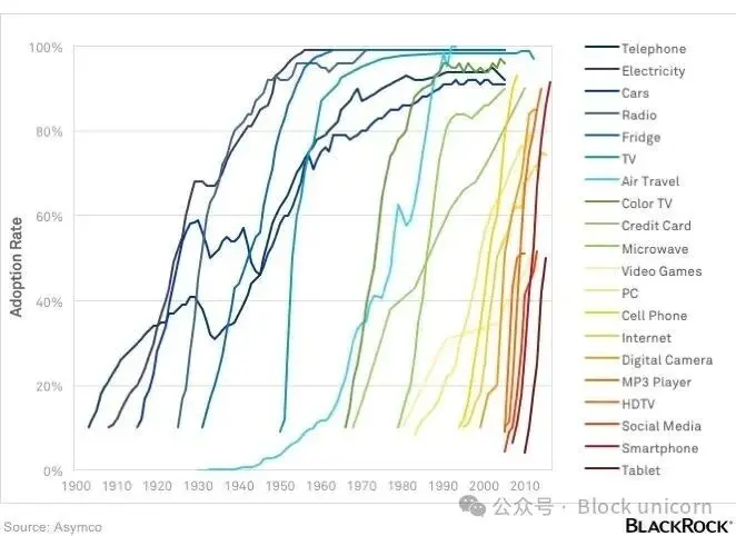 儘管存在這些障礙,但數字資產基礎設施的採用正遵循著有據可查的歷史 S 曲線,類似於信用卡和互聯網數十年的推廣過程。