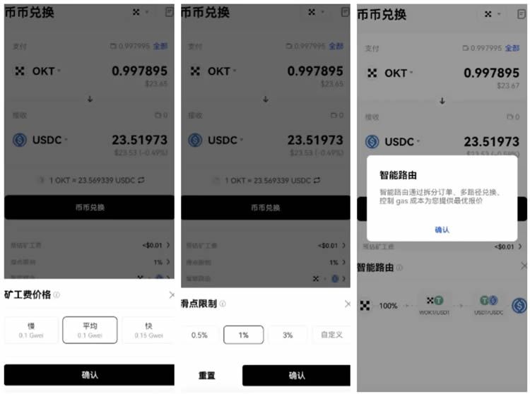 (3)您也可以对矿工费、滑点限制、智能路由进行单独设置。