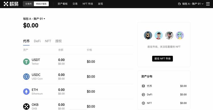 使用欧易Web3钱包前您首先需要先创建或连接Web3钱包。Web3钱包是基于浏览器的数字资产管理工具,用户可以通过钱包直接授权,进而参与市场上的DeFi、NFT项目。欧易Web3钱包支持查看资产、转账收款、连接与授权DApp、添加或切换网络等功能。