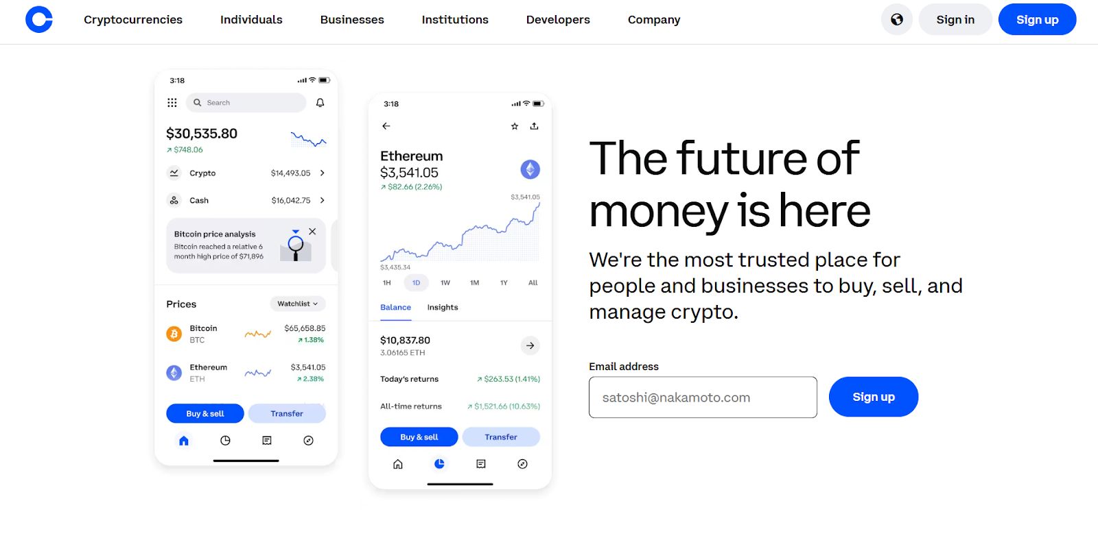 该平台优先考虑安全性,提供双因素认证、冷存储和热钱包保险。它还提供专用的 Coinbase 钱包供用户自行托管资金。凭借其直观的设计和丰富的支付方式,Coinbase 成为新手和经验丰富的交易者值得信赖的选择,并为新用户提供推荐码。