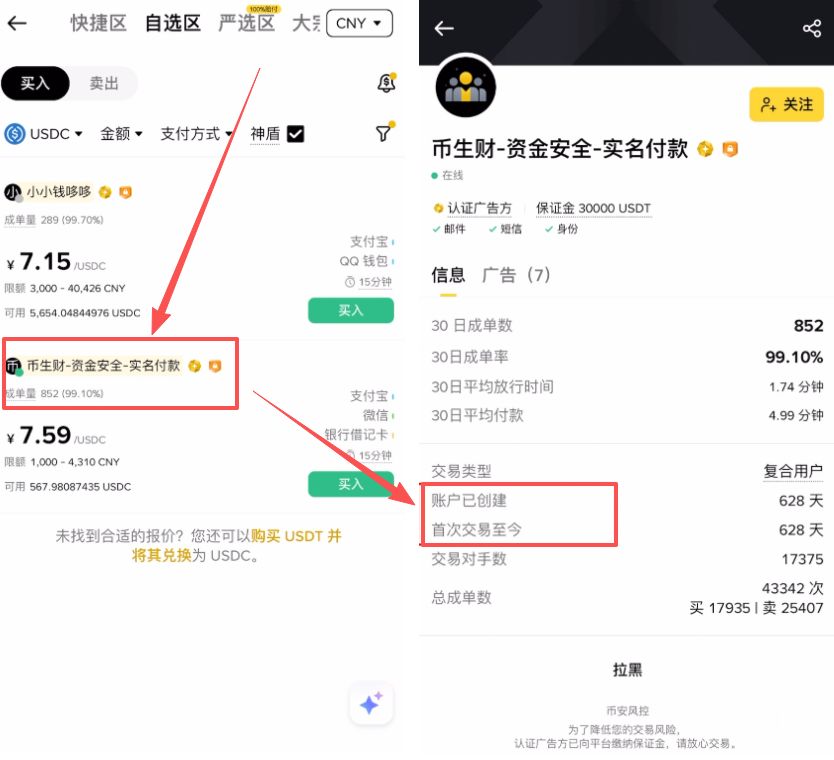- 看数据:对比商家的成单量和成交率,选择成单量大、成交率高(98%以上)的商家。
