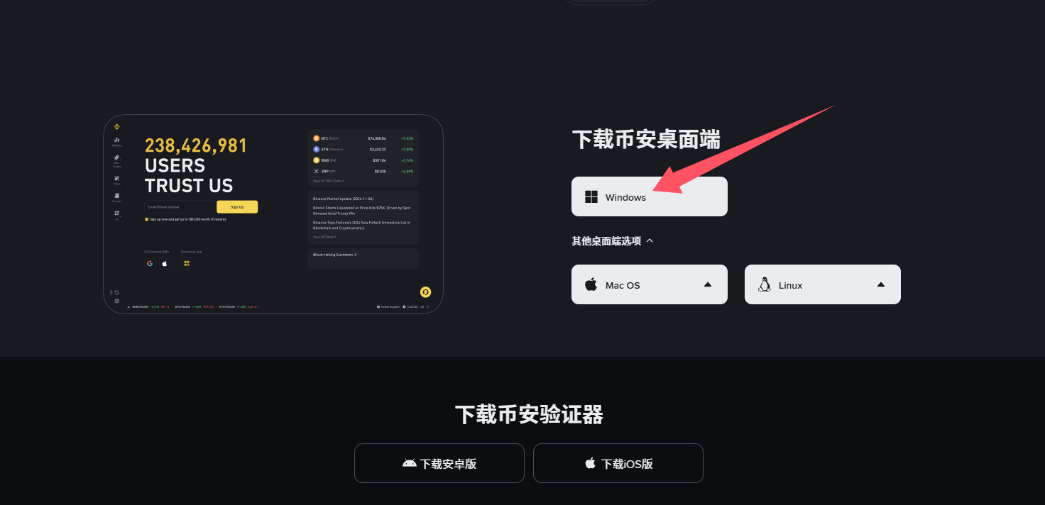 下面,网站链接均为币安官方提供,大家可以放心登录下载!