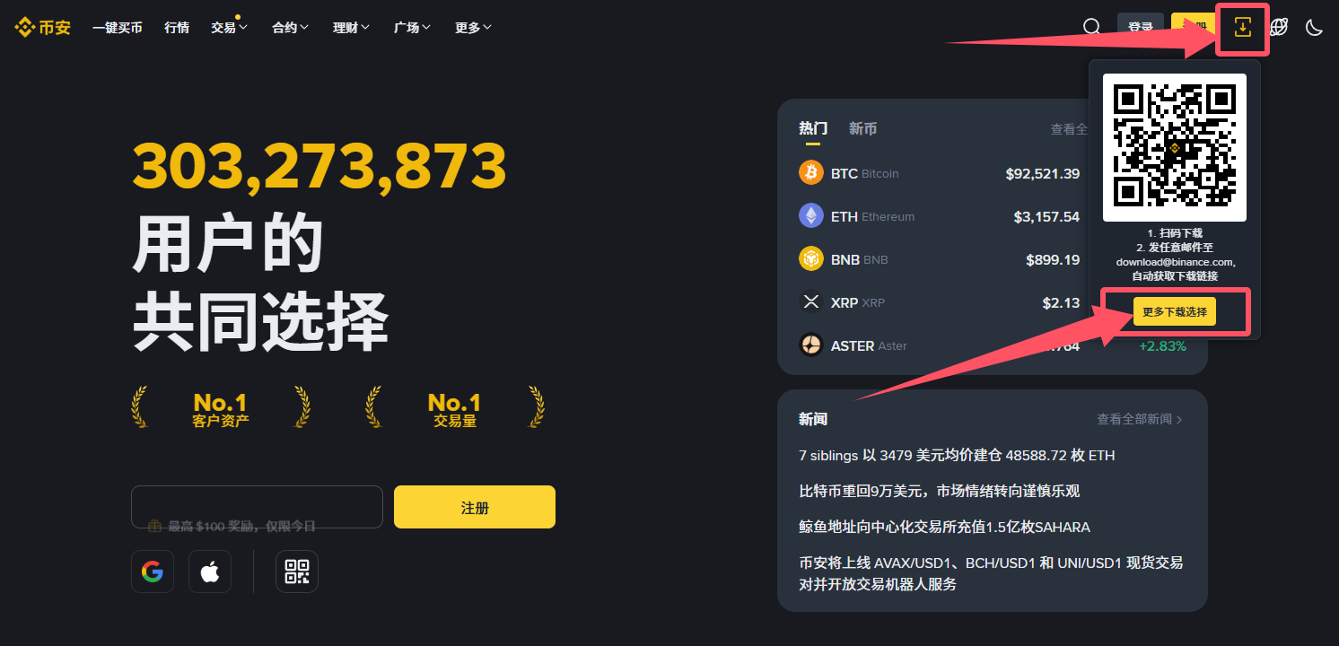 - 打开币安官网先注册账号:点此打开官网;点击下载APP。