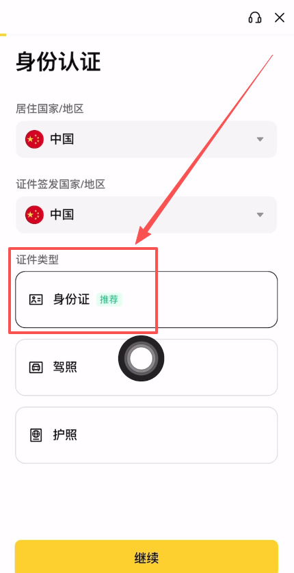 然后需要我们去进行身份认证,你可以直接用身份证来进行认证。