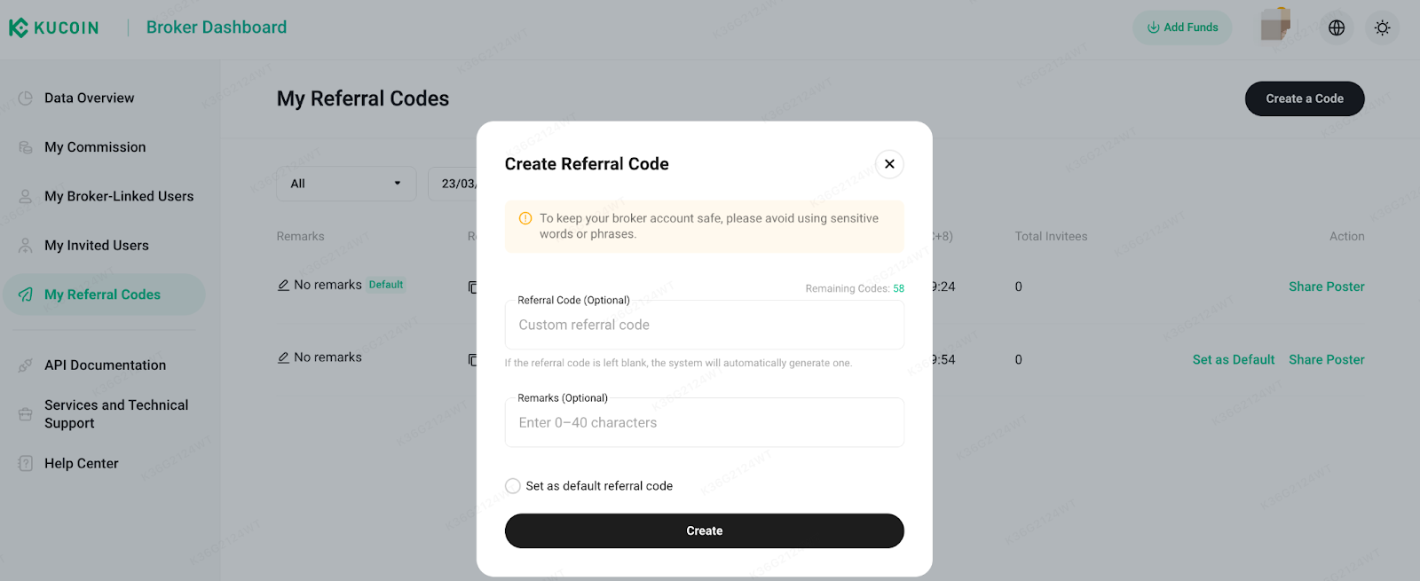 自定義工具 - 創建及管理您的專屬邀請碼,以提升客戶拓展與轉化率。