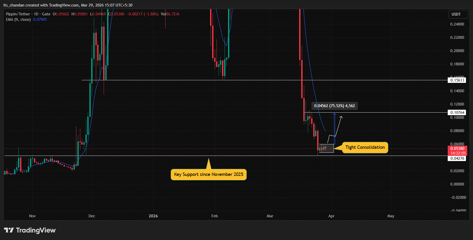 這次在支撐位附近的整合表明,PIPPIN 的當前水平是一個關鍵的轉折區間。