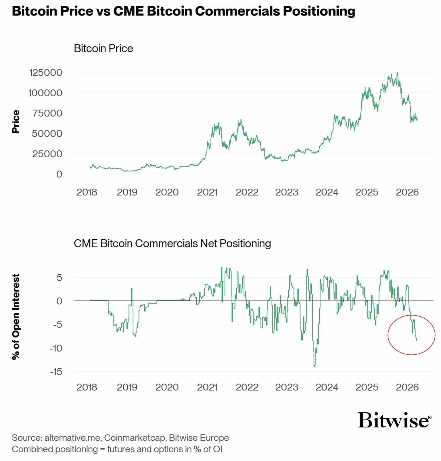 他引用了机构在CME上创纪录的看空比特币仓位,这是自2023年以来的最高水平。