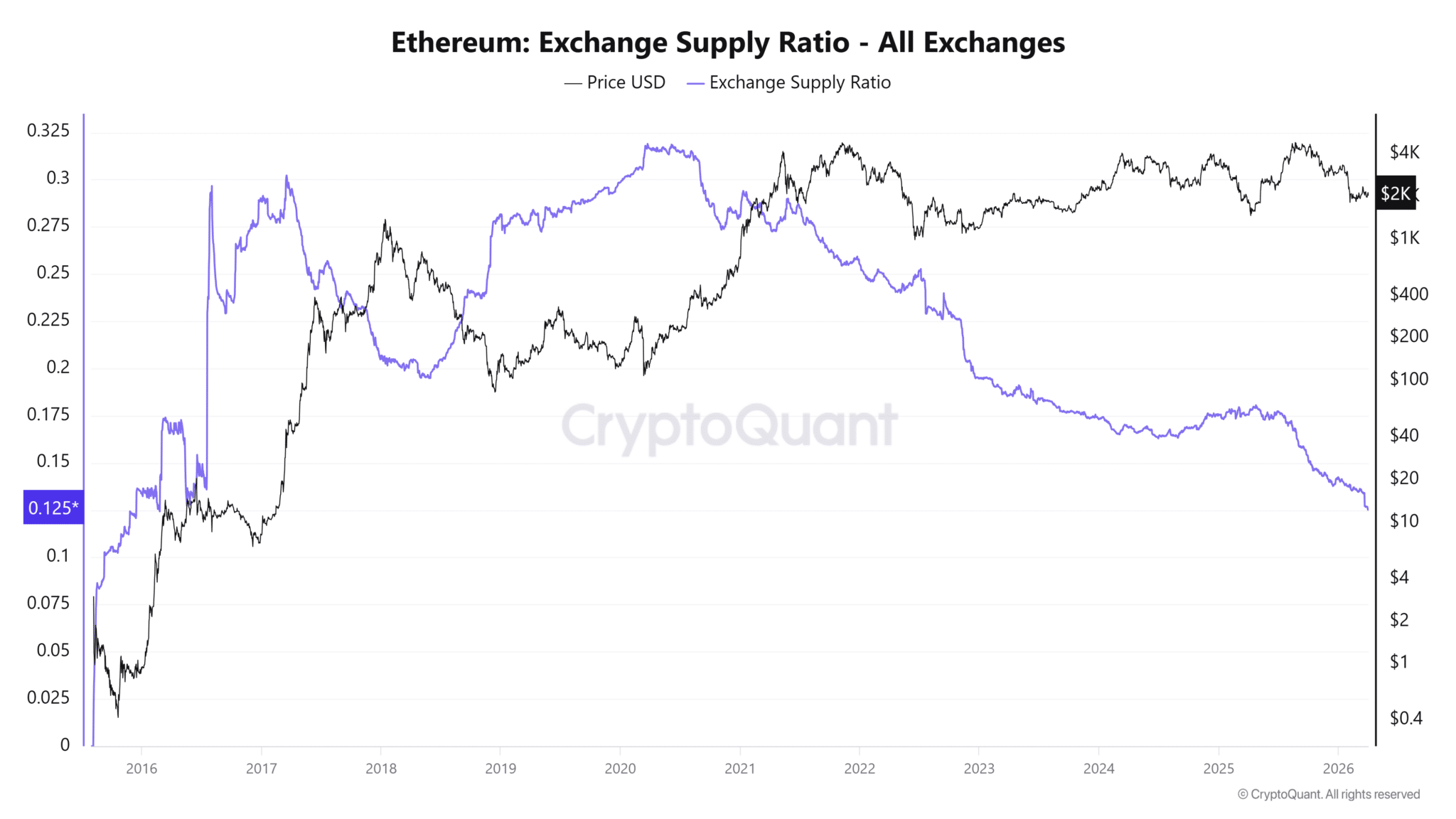 以太坊交易所的资金流动数据,进一步印证了这种日益加剧的稀缺性。根据CryptoQuant数据显示,当前以太坊的交易所供应比率已降至2017年以来的最低水平。这一显著跌幅表明,市场参与者的积累意愿达到历史高位,尤其是在机构投资者持续入场后,市场对ETH的长期持有需求愈发强烈。