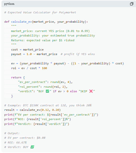 在 Polymarket 上,每一笔交易本质上都是一次期望值判断。多数交易者依赖直觉,而那 13% 的赢家,则用数学做决策。期望值(EV)衡量的不是单次结果,而是重复多次后的平均回报,用来判断一笔交易是否值得参与。