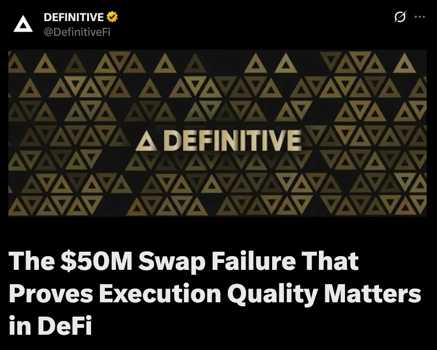 例如,Definitive.Fi 認為,大型鏈上交易不應僅僅選擇技術上可行的路徑進行處理。它們應在提交前進行模擬,並根據實際市場情況進行檢驗,必要時拆分成更小的份額,並通過更廣泛的流動性池進行路由。因此,一個優秀的交易系統不僅應該檢查自身是否能夠完成交易,還應該檢查完成訂單的最佳路徑。