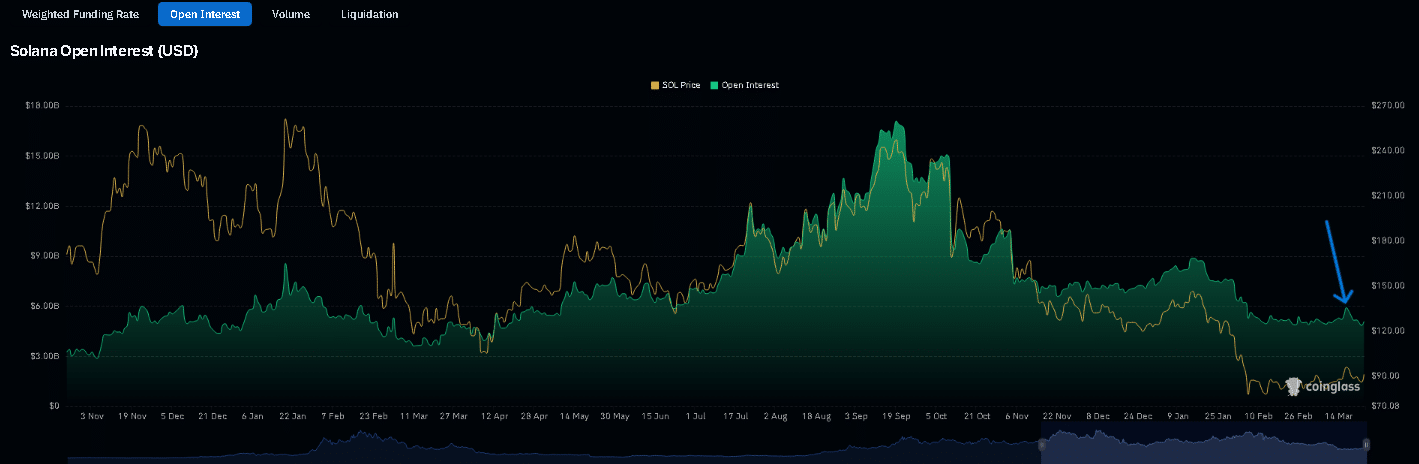 未平仓合约(Open Interest)使形势更加不稳定。为什么?美国与以色列和伊朗冲突的停火希望短暂提振了市场情绪,将未平仓合约推高至 59.2 亿美元。 然而,这种强势很快消退,未平仓合约降至 48.5 亿美元,随后回升至 51 亿美元附近。