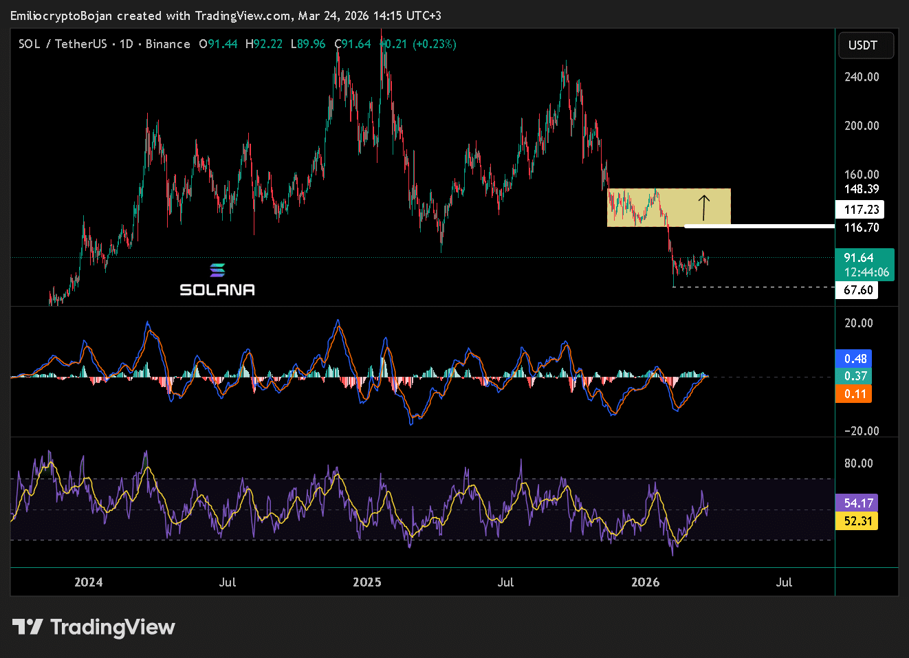 截至撰写本文时,Solana [SOL] 交易价格接近 91.64 美元,处于上升结构中。图表指向更广泛的 117 美元至 145 美元区间,但 117 美元仍是需要收复的水平。明确突破该水平,Solana 将看起来比横盘整理时更强劲。